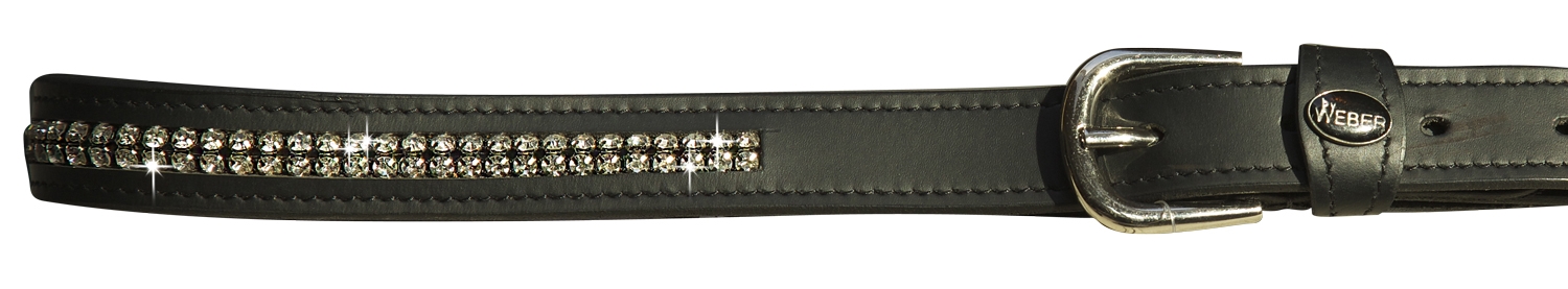 Flot ByWeber bælte i sort blødt læder med to rækker krystaller.