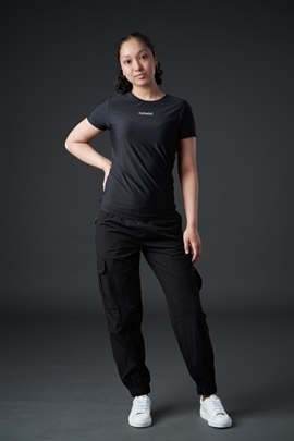 Catago Novel er en super lækker sommerlig ridebluse i sort med et diskret lille Catago logo henover brystet.