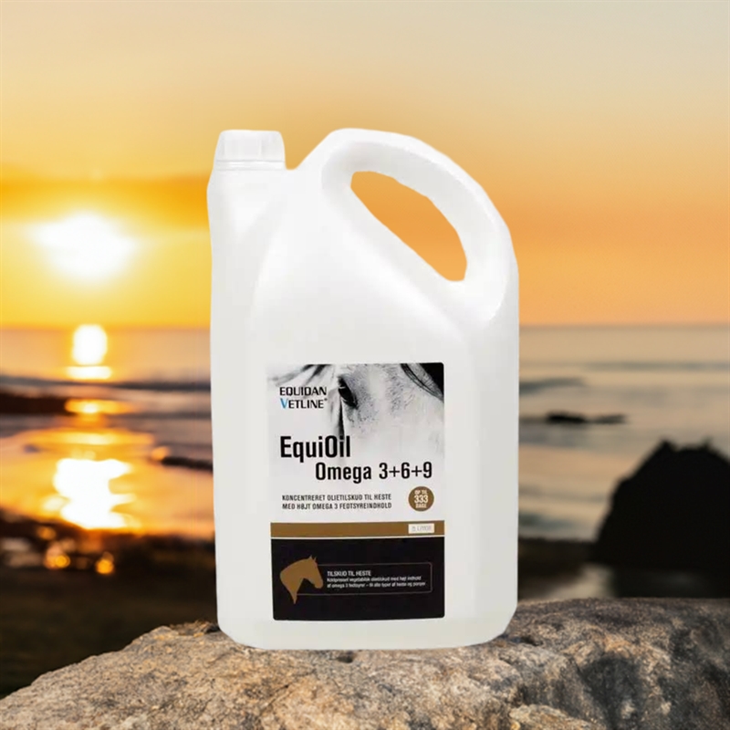 EquiOil Omega 3 6 9 er en olie til alle typer heste og ponyer med lav daglig mængde. Olien er unikt sammensat så den er rig på omega fedtsyre, nemlig omega 3, omega 6 g omega 9