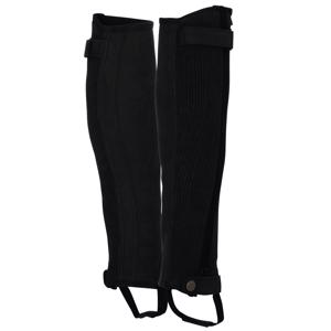 Velsiddende leggings i vaskbar kunstlæder Med velcro tilpasning øverst og knap nederst. Den elastiske indsats langs lynlåsen i hele højden gør at den sidder godt fast på benet under ridning.