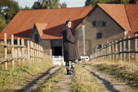 Equipage Heaven er en fin og feminin mørkebrun lang regnjakke.