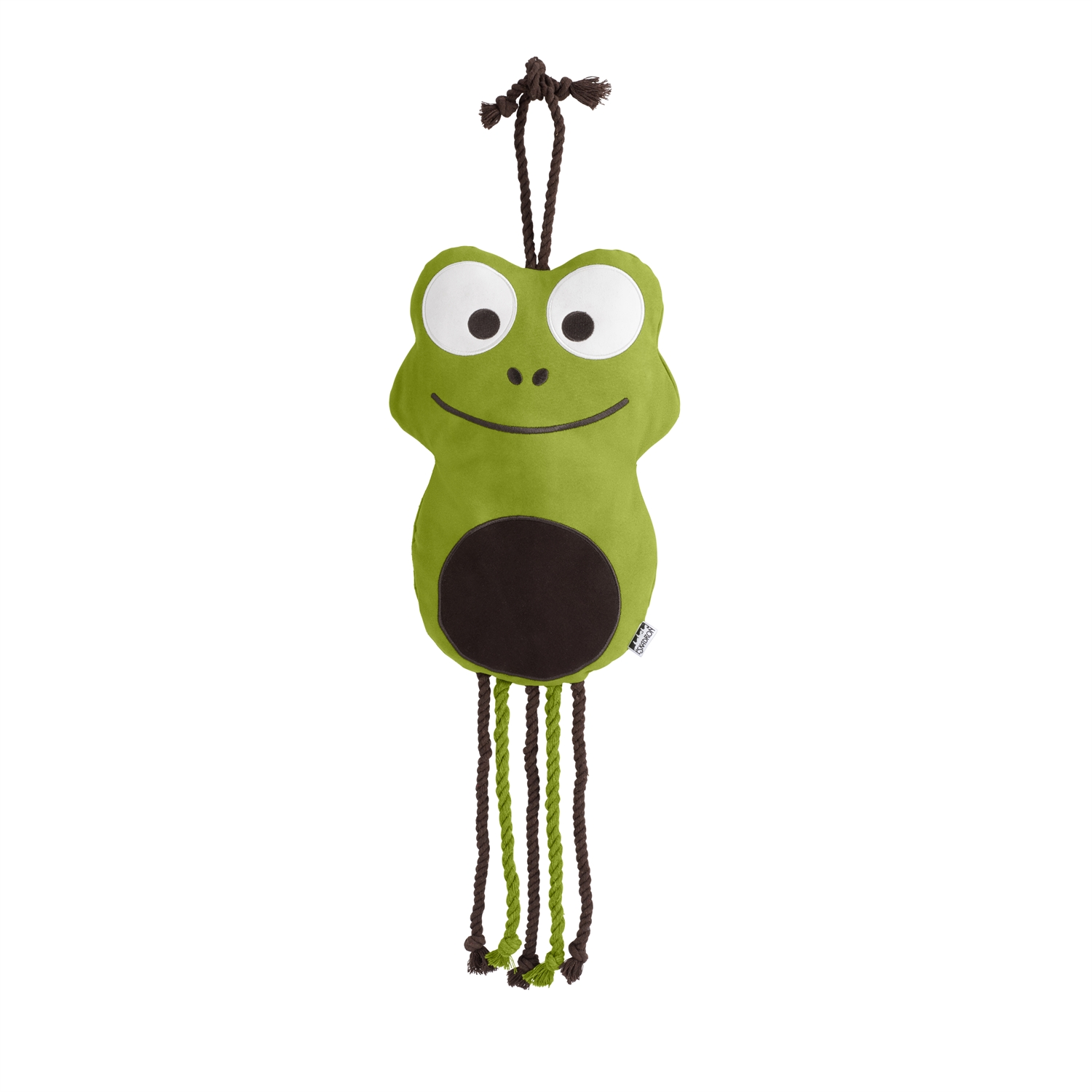 Eskadron Platinum bokslegetøjs frøen er lavet i imiteret læder med flettede snore på hovedet og som "fødder", fyldet indeni knitrer når frøen bliver trykket på, og gør den derfor ekstra sjov.