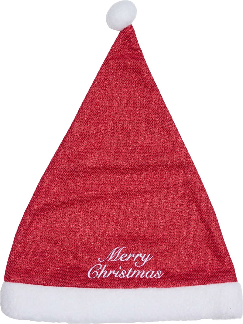 Nissehue med masser af glitter til ridehjelmen og Merry Christmas broderi på front.