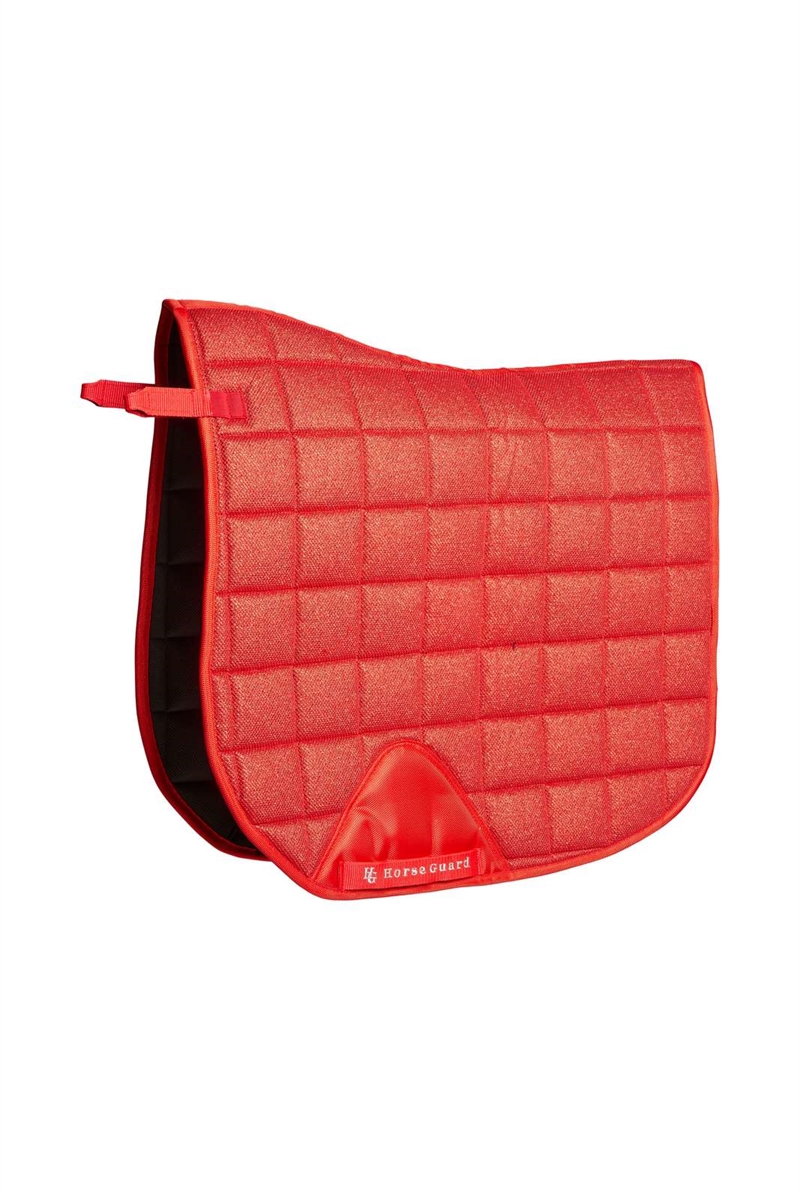 Horse Guard Mesh Glitter underlaget er det flotteste dressur underlag i rød med det vildeste og mest skinnende glitter i stoffet.