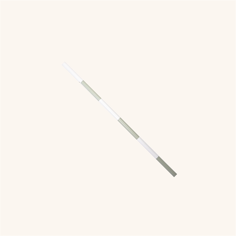 Det mint- og hvidstribede design skaber en let, legende stemning, samtidig med at det bevarer et stilrent og sammenhængende udtryk. Uanset om de bruges til træning eller konkurrencer, giver disse springbomme en flot og dynamisk udfordring til unge kæphesteryttere og deres kæpheste.