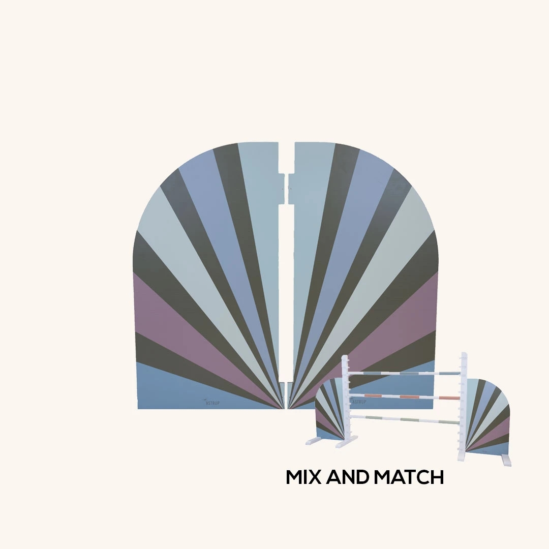 Mix og match med stribede pastel-farvede springbomme for at skabe unikke og personlige spring hver gang. Dette sæt er ét af tre forskellige springside designs, der hver især tilfører et særligt udtryk. Med uendelige muligheder kan du bygge dynamiske og sjove forhindringsbaner, der fremmer kreativitet og tilføjer ekstra flair til legen.