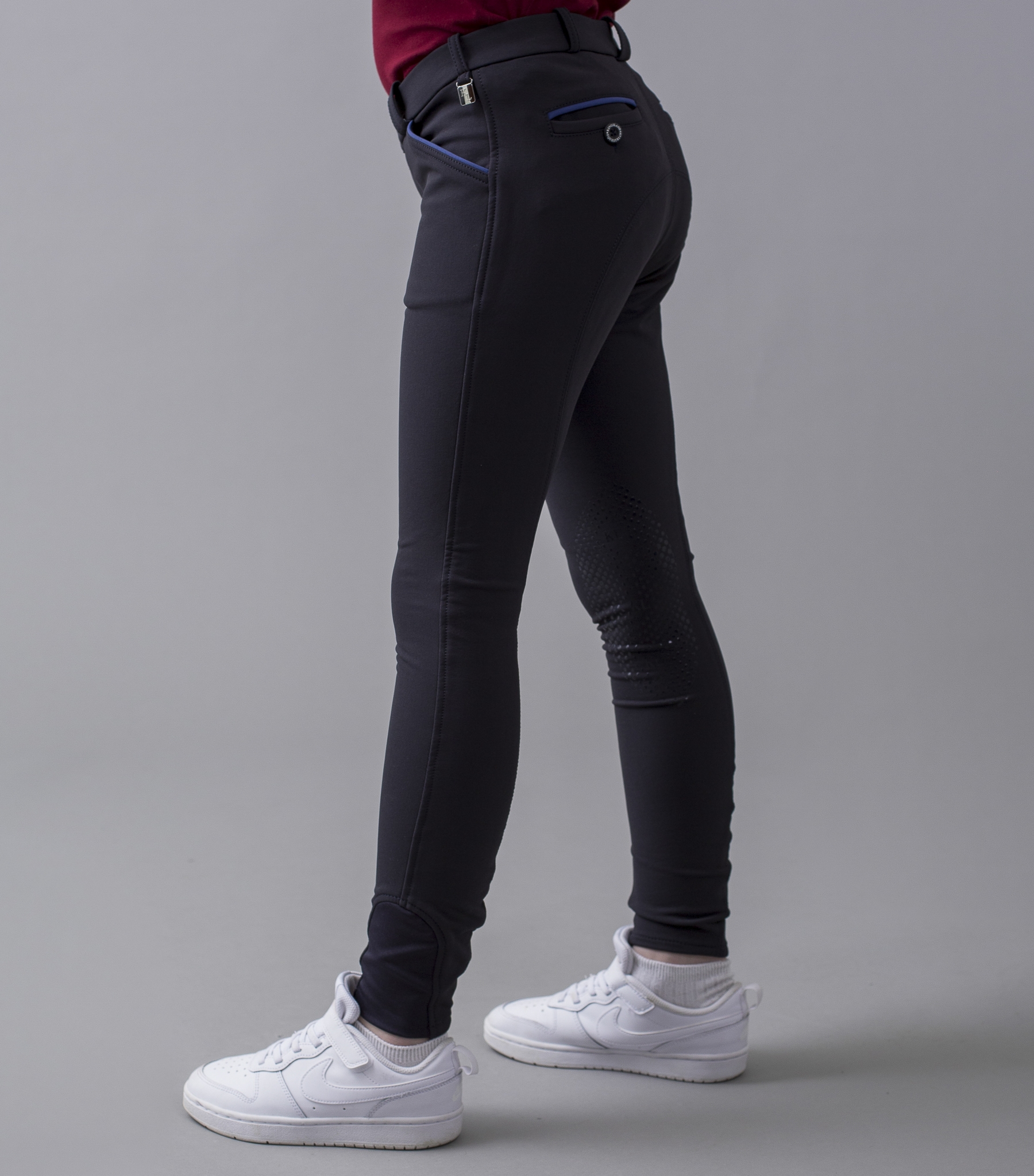 Kingsland Kaden er et par super smarte og sporty ridebukser med knæ grip til drenge.