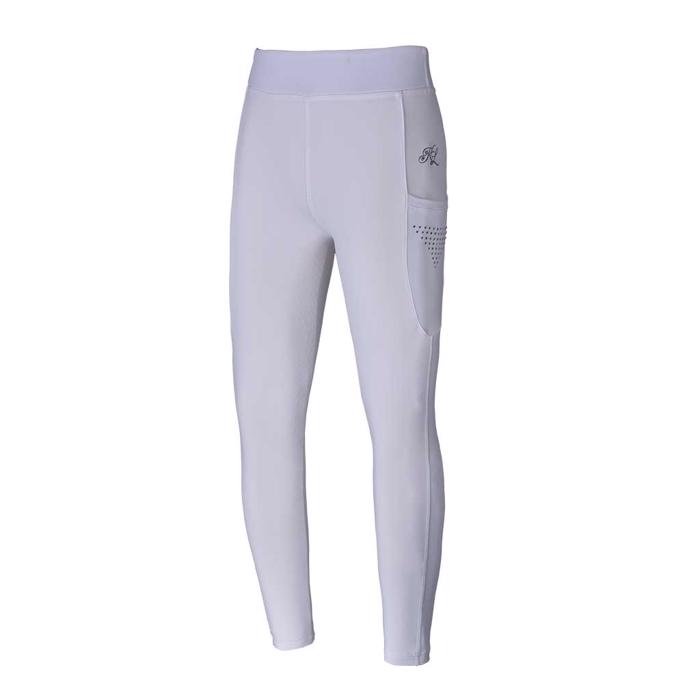 Fine hvide stævne ridetights til piger med fuld grip, fra Kingsland.