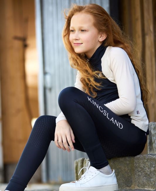 Kingsland Lilo junior ridetights med fuld grip i mørk navy-blå.