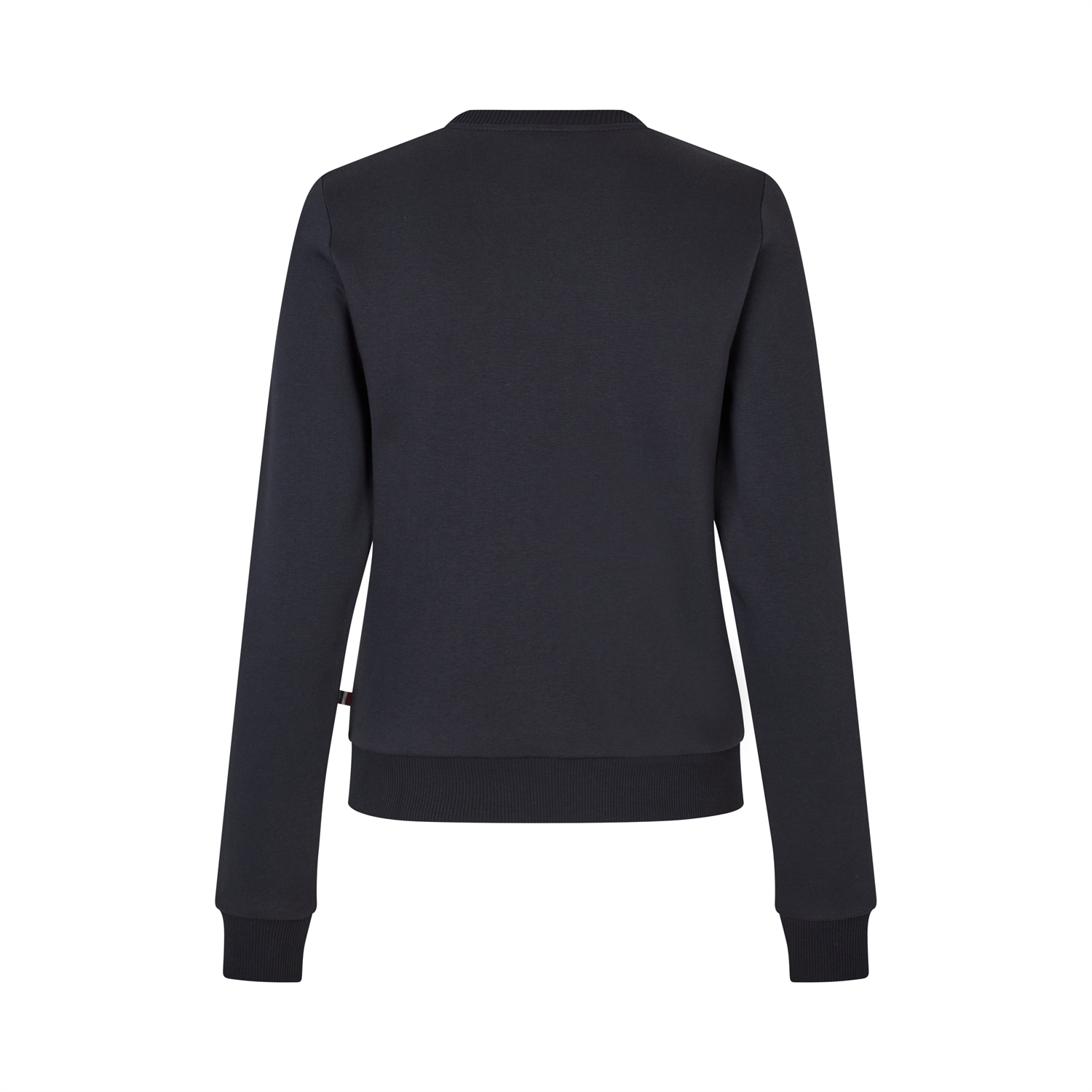Kingsland Natasha er en lækker blød og klassisk sweat ridebluse i navy, med diskret hvidt logo henover brystet.
