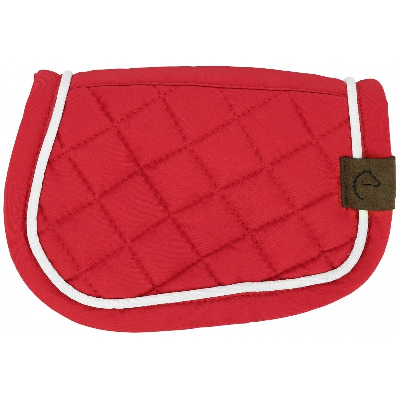 Et detaljeret og realistisk miniatureunderlag med diamantquiltning, hvid kant og et eksklusivt læderlook Equitheme-logo.