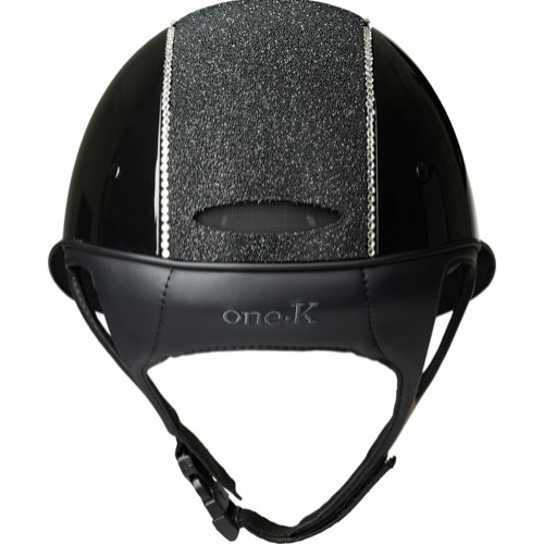 OneK Avance ridehjelm i flot glossy sort med glitter top og swarovski rail.