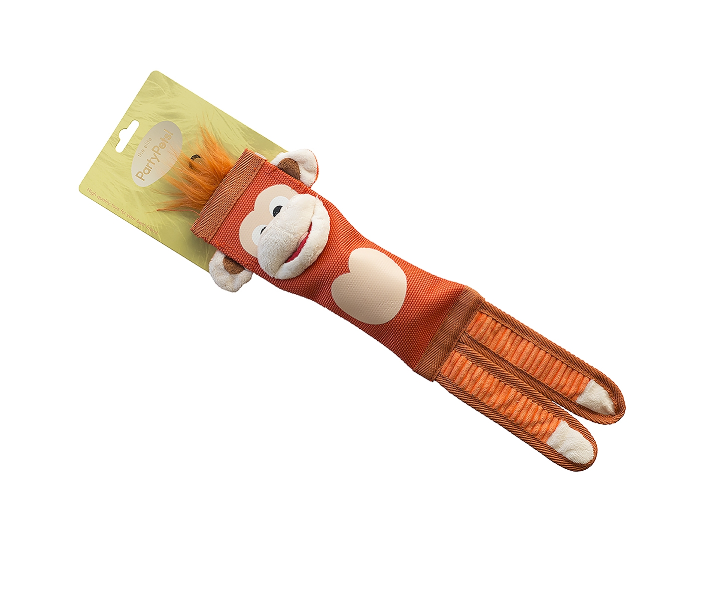 Det populære Party Pets-design byder på både raslende lyde i benene og en squeaker i kroppen, som stimulerer hundens naturlige legeinstinkt og gør legetøjet ekstra spændende. Med en længde på ca. 40 cm passer den godt til både mellemstore og større hunde.