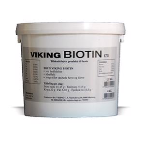 Viking Biotin 4 kg fra Viking CS er et effektivt biotintilskud til heste, kvæg, får og grise. Tilføj det til foderet for at forbedre hovplejen. Et pålideligt valg for optimal sundhed. Tilskudsprodukter til heste af høj kval